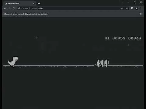 The goal of the project was to show successful performance of a an agent trained using reinforcement learning to play the dino game (jumping and crouching to avoid obstacles).