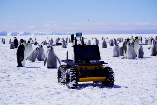 The ECHO project is part of an ongoing effort to use embedded RFID tags in penguins in order to gather information about when individual penguins have returned to their colony. ECHO is a wheeled robot which can read penguin RFID tags by staying near the penguin colony. The robot has an RFID antenna mounted on the front, and has a sensor suite which will allow it to make decisions about which penguins to approach. ECHO represents a potentially huge improvement because it can stay near the colony without human interference and perform in a greater variety of weather conditions.