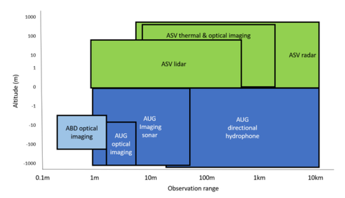 This chart gives a sense of the coverage provided by the sensor suite onboard the ASV and accessory vessels.